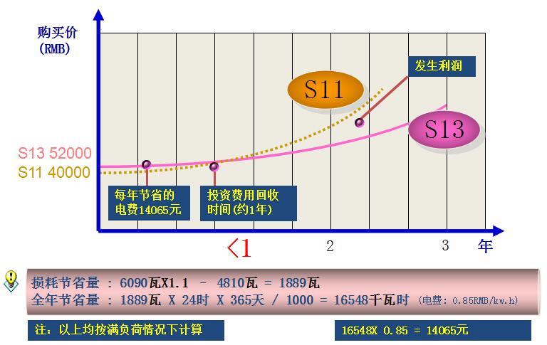 變壓器型號別損耗對比 500kVA